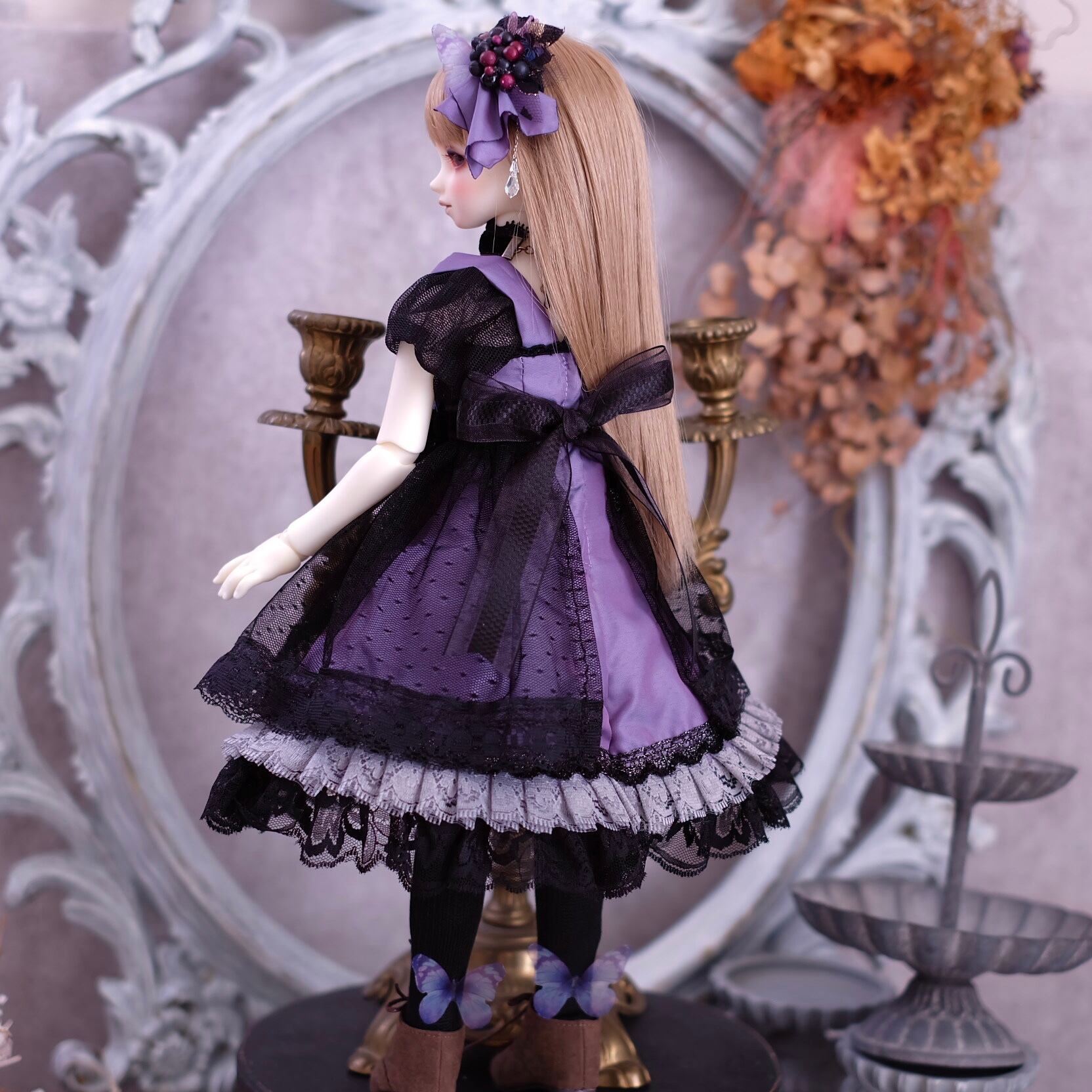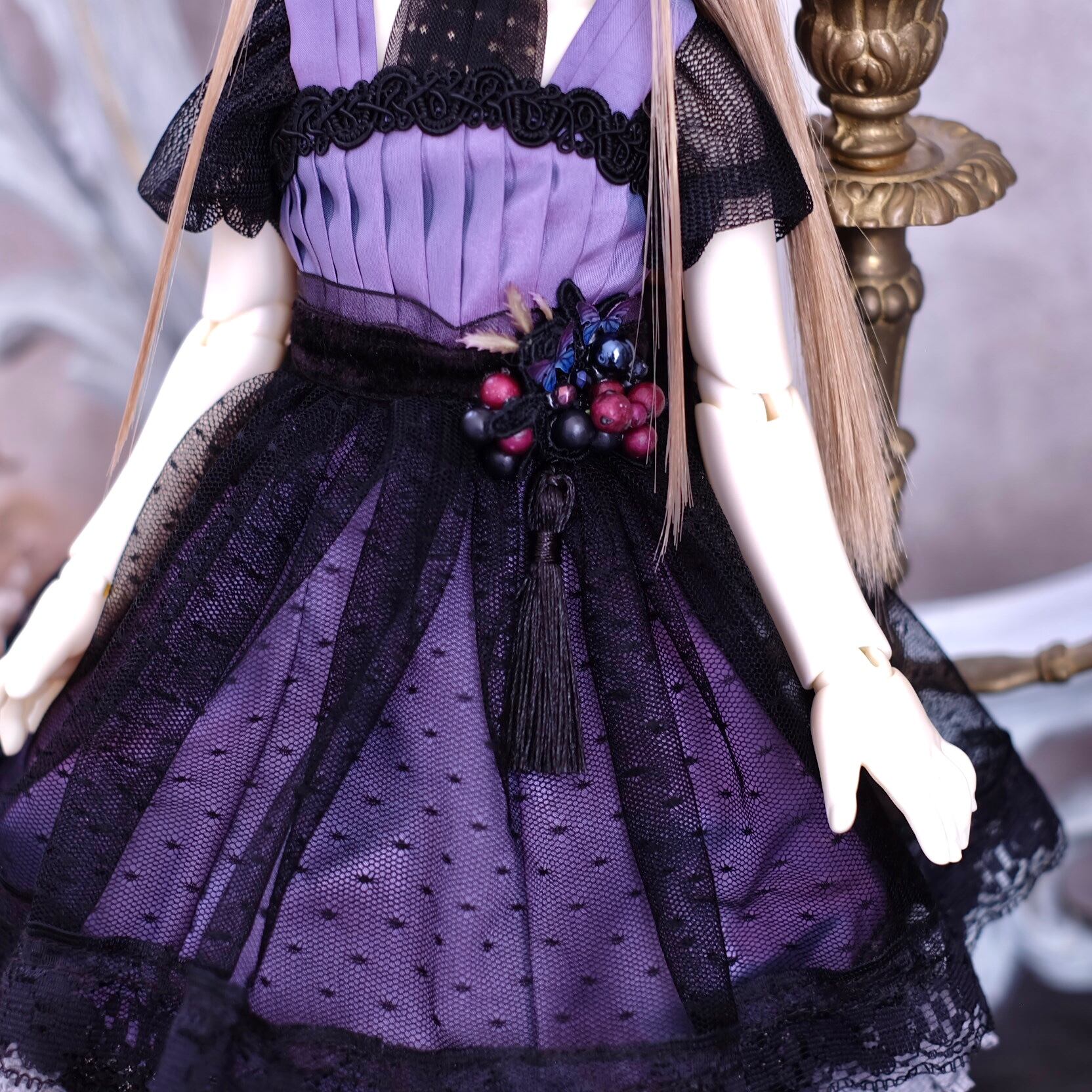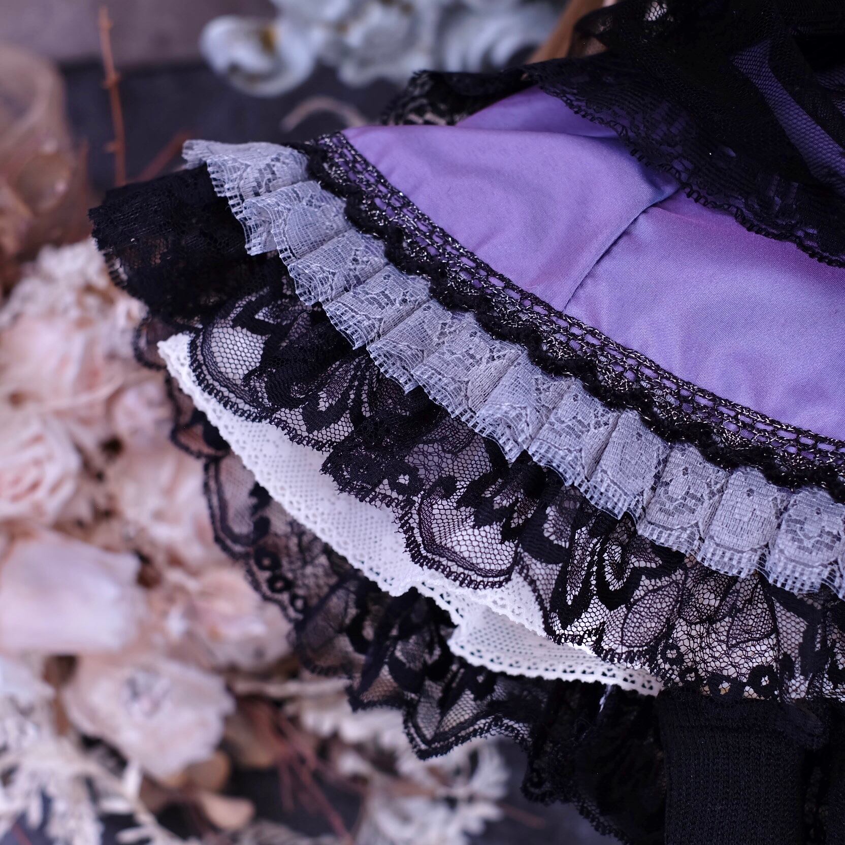 繊細なドットチュールの黒いエプロンとチョーカーはワンピースに縫い付けてあります。